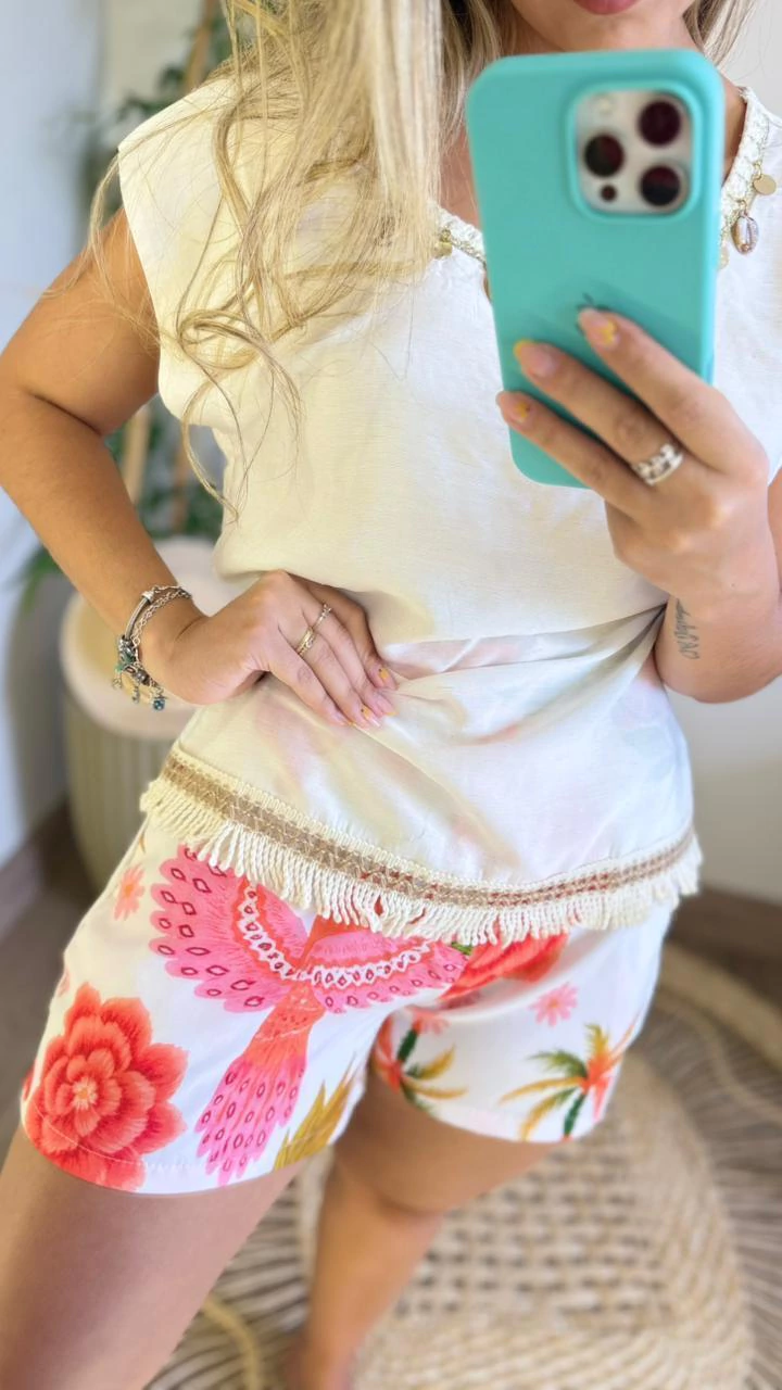 Uma peça única e cheia de personalidade! Esta blusa destaca-se pelo delicado bordado com conchas naturais, que adiciona textura e um toque sofisticado inspirado na natureza. Confeccionada em tecido leve e confortável, oferece caimento fluido e frescor ideal para dias mais quentes. A modelagem tamanho M garante ajuste perfeito, valorizando a silhueta com elegância. Perfeita para compor looks exclusivos e cheios de charme.